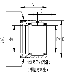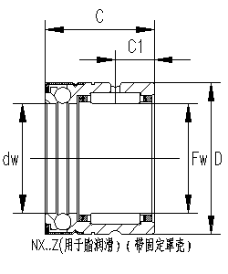 向心滾針軸承與密封式推力球軸承的組合,帶固定罩殼,用于中等軸向負(fù)荷(用于脂潤(rùn)滑)