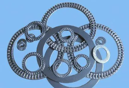 推力軸承由帶滾針或圓柱滾子或滾珠的推力保持架組件和推力墊圈組成。滾針和圓柱滾子受到推力保持架的保持和引導(dǎo)。在與不同系列的DF推力軸承墊圈一起使用時,則可為軸承的配置提供許多不同的組合。由于選用高精度圓柱滾子(滾針)增加了接觸長度,使得此軸承在很小的空間下可獲得高載荷能力和高的剛度。另一優(yōu)點是,如果相鄰零件表面適于作滾道面時可省去墊圈,可使設(shè)計緊湊,DF推力滾針軸承和推力圓柱滾子軸承采用的滾針和圓柱滾子的圓柱面為修形面,可減少邊緣應(yīng)力,提高使用壽命。